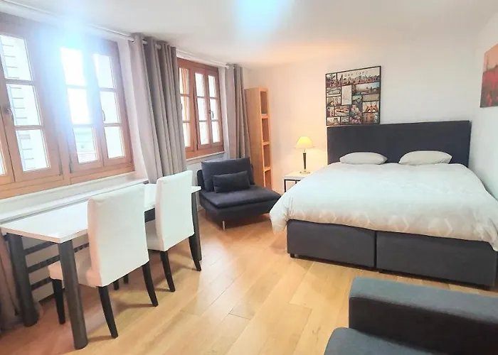 El apartamento de 41 m^2 está situado a 1 km del centro en el distrito Centro histórico, a una distancia de 2 km del Mon Repos Park. La Catedral de San Pedro de Ginebra se encuentra a pocos minutos a pie de este apartamento, mientras que el Conservatoire et Jardin botaniques de la Ville de Genève está a 10 minutos en coche. Además, el Museo de Historia Natural de Ginebra está situado cerca de la propiedad.
